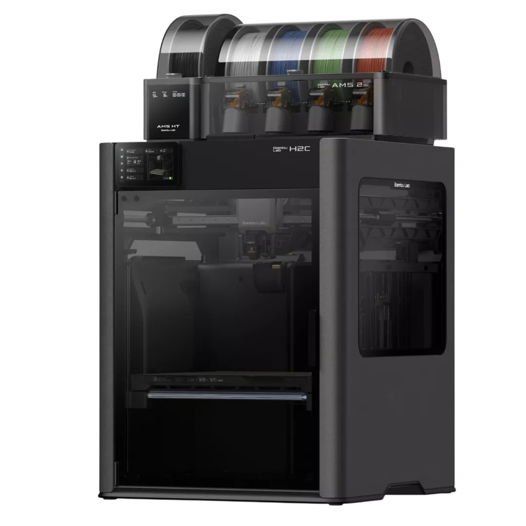 The Bambu Lab H2C is a professional multi-material 3D Printer built for precision and production reliability. Featuring true 7-color printing, purge-saving technology, a high-torque servo extruder, and AI monitoring, it delivers flawless parts straight off the printer. With a heated chamber, 350 °C hotends, and advanced filtration, the H2C enables seamless printing of complex, engineering-grade designs.